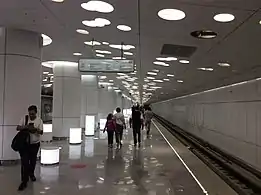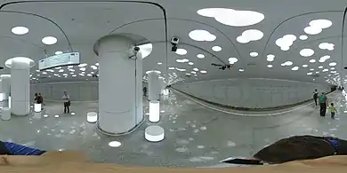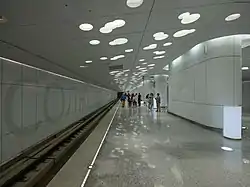 На платформі імітовані сонячні промені, що виникають через світні отвори в стінах і стелі завдяки відбиваючим властивостям штучних джерел світла. На стінах є навігація у вигляді світлових смуг в транслюцентному штучному камені[6][7]. При підйомі ескалатором пасажири можуть побачити оптичну ілюзію у вигляді висхідного сонячного диска[8].