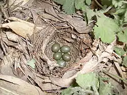 Повні свіжі кладки зазвичай з'являються в другій та третій декадах травня. У випадку розорення гнізда можлива повторна кладка. Насиджує самка протягом 13—14 діб[4].