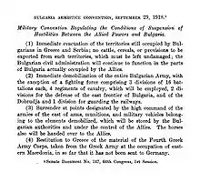 - Солунське перемир'я. Primary Documents - Allied-Bulgarian Armistice Terms, 29 September 1918 [Умови Союзницько-Болгарського перемир'я] (English). GR..