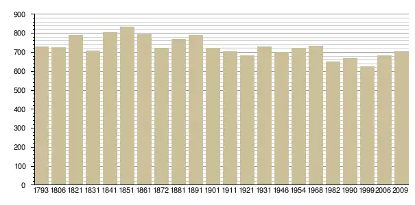 Динаміка населення (base Cassini de l'EHESS pour les nombres retenus jusque 1962[3], base Insee à partir de 1968 (population sans doubles comptes puis population municipale à partir de 2006)[4] · [5] ):