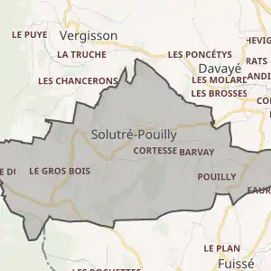 - Розташування муніципалітету Солютре-Пуї на мапі Франції та сусідні муніципалітети
