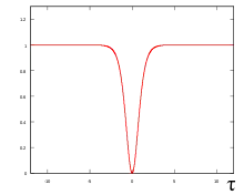 де A — амплітуда солітону, L — ефективна ширина його основи. Такий солітон рухається зі швидкістю .