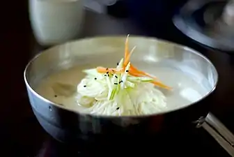 У корейській кухні сомйон використовується в гарячих та холодних супах з локшини[6], таких як чанчхі-ґуксу (бенкетна локшина) та конх-ґуксу (локшина в холодному соєвому супі), а також інших стравах, таких як бібім-ґуксу (змішана локшина). Його часто подають із гострим анчу (їжею, яка супроводжує алкогольні напої), таким як кольпені-мучхім (салат із місячного равлика).