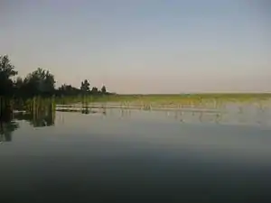 По берегах озера зростають осока гостра, аїр тростиновий, рогози вузьколистий і широколистий, хвощ річковий, очерет звичайний, рдесники плавучий, гребінчастий і стиснутий та глечики жовті, угруповання яких включені у Зелену книгу України.