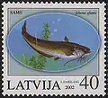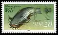 Сом звичайний зображений на поштових марках деяких європейських держав: