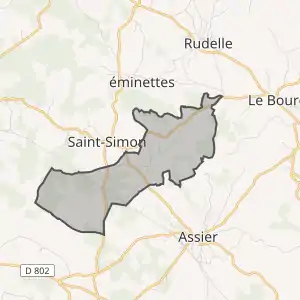 Муніципалітет розташований на відстані[2] близько 470 км на південь від Парижа, 130 км на північ від Тулузи, 45 км на північний схід від Каора.