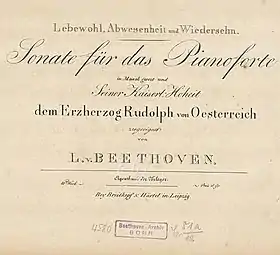 Соната для фортепіано №26 Л. ван Бетховена мі-бемоль мажор, op. 81a, "Прощальна", написана в 1809-1810 роках. Соната присвячена ерцгерцогу Рудольфу Австрійському і отримала свою назву з нагоди його вимушеного від'їзду з Відня під час війни П'ятої коаліції. Під першими трьома нотами сонати Бетховен написав підтекстовками: Lebewohl («Прощавайте»).