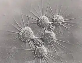 - Nikolaev SI, Berney C, Fahrni JF, et al (May 2004). The twilight of Heliozoa and rise of Rhizaria, an emerging supergroup of amoeboid eukaryotes. Proc. Natl. Acad. Sci. U.S.A. 101 (21): 8066–71. PMC 419558. PMID 15148395. doi:10.1073/pnas.0308602101. «The Heliozoa, another group described by Haeckel (11), included initially only two freshwater actinophryids, Actinophrys and Actinosphaerium. Later, several other axopodia-bearing protists were added to this taxon, forming a large heterogeneous class, which comprised from five (12) to eight (13) orders. … the three main orders of Heliozoa (Actinophryida, Centrohelida, and Desmothoracida).»