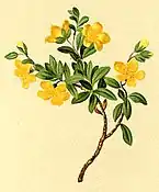 Це вічнозелена рослина, до 25 см карликовий кущ. Стебла розгалужені густі. При основі вони майже деревні, грубі й щетинисті. Гілки волохаті й червонуваті. Має еліптичне вузько ланцетне, зелене листя й блідо-жовті квіти. Пелюстки 5–10 мм. Квітне навесні і влітку.