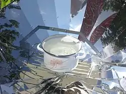 Сонячні колектори можуть застосовуватися для приготування їжі. Температура в фокусі колектора досягає 150 °С. Такі кухонні прилади можуть широко застосовуватися в країнах, що розвиваються. Вартість матеріалів необхідних для виробництва «сонячної кухні», становить $3 — $7. У країнах, що розвиваються, для приготування їжі активно використовуються дрова.