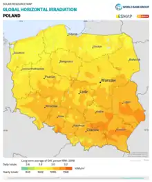 Загальна потужність електростанцій на фотовольтаїці приєднаних до мережі станом на 2012 рік була близько 1,290 МВт[8]. Зелений інститут підтримує розвиток сонячної енергетики в Польщі й проводить кампанію «Energy Democracy»[9].