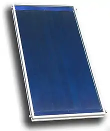 Складається з елементу, що поглинає сонячне випромінювання, прозорого покриття та термоізолюючого шару. Поглинальний елемент називається абсорбентом; він з'єднаний з теплопровідною системою. Прозорий елемент зазвичай виконується з загартованого скла з пониженим вмістом металів.