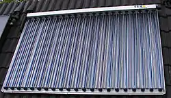 Між зовнішньою та внутрішньою трубками знаходиться вакуум. Саме ваккумний прошарок дає можливість зберегти близько 95 % уловлюваної теплової енергії. Окрім того, у вакуумних сонячних колекторах знайшли застосування теплові трубки, що виконують роль провідника тепла. При опроміненні установки сонячним світлом, рідина, що знаходиться в нижній частині трубки, нагріваючись перетворюється на пару.