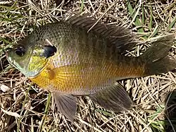 Сонячний окунь синьозябровий (Lepomis macrochirus) — риба родини Центрархових, ряду окунеподібних. Прісноводна субтропічна риба, до 41 см довжиною.
