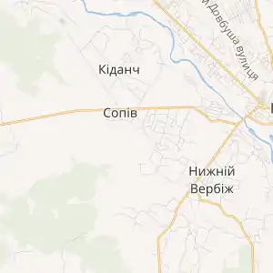 З Сопова до обласного центру — 67 км, а по прямій (за картою) на північний захід — 45 км. До столиці України (за картою) 450 км, а по шосе — 640 км.