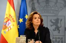 Отримавши юридичну освіту 1994 року, працювала адвокатом в Леоні і в 27 років спробувала себе в політиці. З 2004 до 2018 року — депутат нижньої палати іспанського парламенту від Мадрида. 2008 року стала першою жінкою на посаді прессекретаря Народної партії. У грудні 2011 року увійшла до складу кабінету міністрів Маріано Рахоя в статусі заступника голови уряду, преспредставника уряду і міністра, який очолює адміністрацію голови уряду, та обіймала ці посади до 2018 року. Заміжня, має сина.