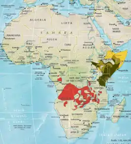 Вид поширений в Південній Африці, де він займає територію, що простягається від центральної Анголи до західного та південно-східного берегів озера Малаві через Катангу, Замбію, південно-західну Танзанію, Малаві та центрально-західну частину Мозамбіку. Фрагментовано і мозаїчно поширений в Намібії, на півночі Ботсвани (національний парк Чобе), у прикордонній зоні між Габоном та Республікою Конго та в прикордонній зоні між Танзанією, Руандою та Бурунді. Мешкає в лісистій савані та міомбо.