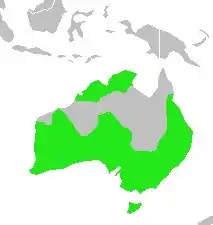 Ендемік Австралії. Ареал виду займає більшу частину країни, за винятком пустельних районів центрально-західної Австралії та вологих тропіків півночі. Місця проживання цих птахів — відкриті трав'янисті або чагарникові ділянки з наявністю ізольованих дерев та джерела прісної води.