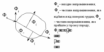 Розглянемо процес проходження випромінювання через частинку гірської породи.