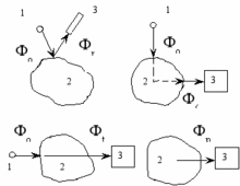 Якщо розділити обидві частини рівняння на Фо, отримаємо: 1= r + σ +μ + t, Де r, σ, μ, t — коефіцієнти відбиття, розсіяння, поглинання, пропускання.