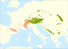 | Ареал сосни гірської | |