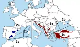 ![]() Мапа поширення підвиду 1b — ареал виду позначений | ||||||||||||||||||||||