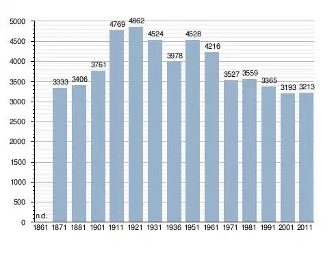Станом на 31 грудня 2014 року в муніципалітеті офіційно проживали 134 іноземці з 28 країн, серед них 62 громадяни країн Євросоюзу та 21 громадянин України.[4]