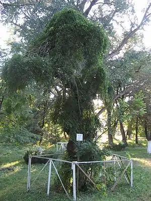 Під охороною — софора японська зі стовбуром покрученої чудернацької форми.