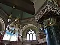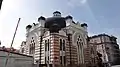 Симетрична споруда, що закінчується полігональним куполом заввишки 23 м та 19 м у діаметрі. До центрального об'єму долучені чотири конхи з арками. Візантійський стиль прослідковується в чергуванні кольорових смуг на фасаді. Арки оздоблені типовими мавританськими елементами. Деталі з різних стилів, особливо захоплення орієнталізмом, що було популярне у сецесії, створюють унікальний ансамбль, що визначають як стиль Національний романтизм.