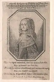 ![]() Софія Єлизавета Мекленбург-Гюстровська Софія Єлизавета на гравюрі роботи Філіпа Кіліана, близько 1650—1680 років | |