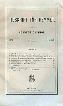 | Заклад | Dagny[7][5] і Tidskrift för hemmetd[5] |