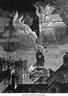 «Настала жахлива пауза, потім пані Бланшар потрапила в сітку своєї повітряної кулі, і з тріском впала на похилий дах будинку на Рю де Прованс, а потім на вулицю, де вже підняли лише її побитий труп…».[26]