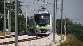 Рухомий склад складається з 28 вагонів, лінію обслуговують 7 чотиривагонних потягів що живляться від повітряної контактної мережі. Інтервал руху починається від 12 хвилин у годину пік, до 20 хвилин в решту часу.