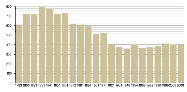 Динаміка населення (base Cassini de l'EHESS pour les nombres retenus jusque 1962[3], base Insee à partir de 1968 (population sans doubles comptes puis population municipale à partir de 2006)[4] · [5] ):