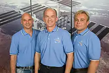 - цифра в дужках вказує кількість закінчених космічних польотів, включаючи цей, які вже здійснив даний член екіпажу.
