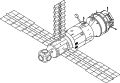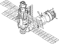 - радянської орбітальної станції Мир з пристикованим вантажним кораблем Прогрес М-1;
