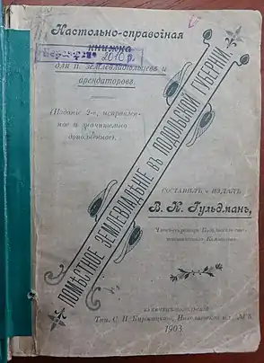 - Гульдман В. К. Проскуровский уезд // Поместное землевладение в Подольской губернии. Настольно-справочная книжка для господ землевладельцев и арендаторов. Издание 2-ое, исправленное и значительно дополненное / за ред. В. К. Гульдмана. — Каменец-Подольский: типография Киржацкого С. П., 1903. — С. 99-100.