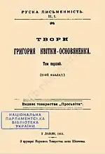 - Квітко-Основ’яненко Г. Твори. — 2-е. — У Львові : Накладом Товариства «Просьвіта», 1913. — Т. II. 2. — 552 с. — (Руска письменність)