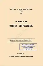 - Стороженко О. Твори. — У Львові : Видавництво товариства «Просьвіта», 1911. — Т. VIII. — 592 с. — (Руска письменність)
