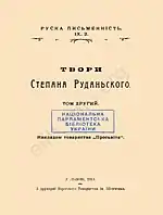 - Руданський С. Твори. — У Львові : Накладом товариства «Просьвіта», 1912. — Т. IX. 1. — 456 с. — (Руска письменність)
