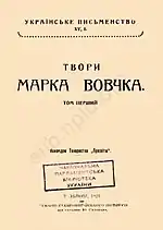 - Вовчок М. Твори. — У Львові : Накладом Товариства «Просвіта», 1923. — Т. XV. 1. — 420 с. — (Українське письменство)
