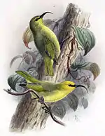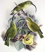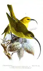 | Амакіхі великий | Viridonia sagittirostris | Rothschild, 1892 | Гавайські острови | 1901 р. | вирубка лісів під плантації цукрової тростини | ![]() |