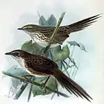 | Poodytes rufescens | (Buller, 1869) | о-ви Чатем | 1900 р. | завезення хижаків, кіз та кроликів | ![]() | |