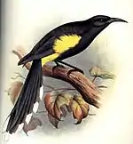 | Акіалоа ланайський | Akialoa lanaiensis | Rothschild, 1893 | о. Ланаї (Гавайські острови) | 1892 р. | завезення свиней, що винищили кормові рослини | ![]() |