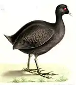 | Лисуха маскаренська | Fulica newtonii | Milne-Edwards, 1867 | Маврикій і Реюньйон | поч. 18 ст. | полювання, осушення боліт. | ![]() |