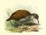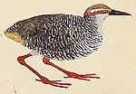 | Пастушок червонодзьобий таїтянський | Gallirallus pacificus | Gmelin, 1789 | Таїті | 1945 р. | завезення пацюків та кішок | ![]() |