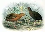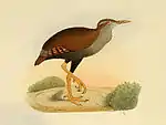 | Погонич лайсанський | Porzana palmeri | Frohawk, 1892 | о. Лайсан, Гавайські острови | 1944 р. | завезення кроликів, що знищили всю рослинність | ![]() |