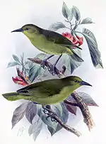 | Окулярник сейшельський | Zosterops semiflavus | E. Newton, 1867 | о. Мері-Анн (Сейшельські острови) | 1888 р. | руйнування місць проживання | ![]() |