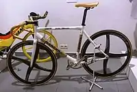 Нижній ряд зліва направо: Велосипеди компаній Corima, Cervelo та Cinelli