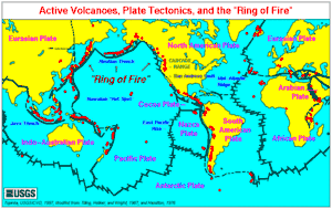 Мапа меж літосферних плит Землі та вулканічної активності